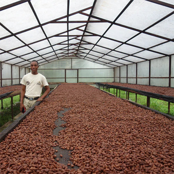 We craft this bar with cacao sourced from Pisa, Haiti, where smallholder farmers produce exceptional, organically grown beans with naturally rich chocolate and caramel notes. Through our sourcing partner, we pay above Fair Trade prices to support the farmers' livelihoods, long-term sustainability, and quality at origin.